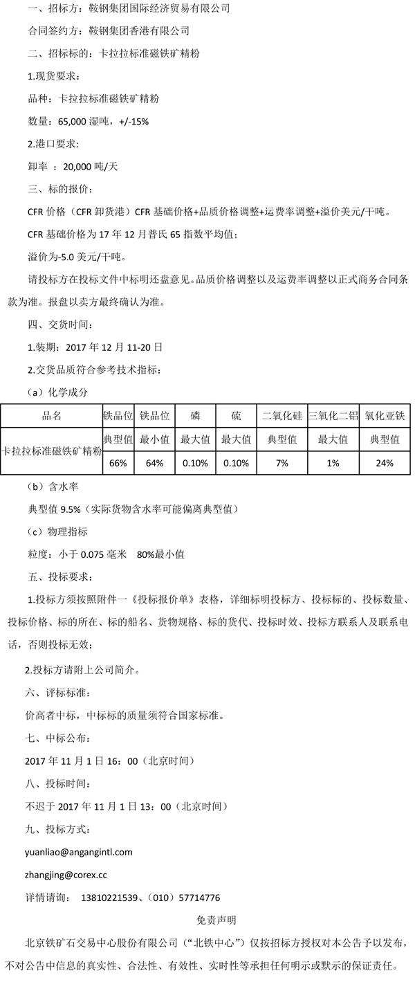 鞍鋼集團國際經濟貿易有限公司鐵礦石銷售招標公告