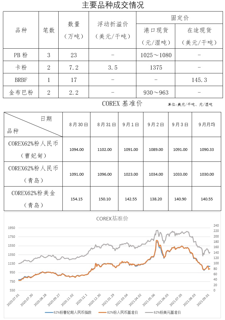 8月30日-9月3日成交9筆共51.73萬(wàn)噸,其中在途2筆22.2萬(wàn)噸,港口7筆29.53萬(wàn)噸。