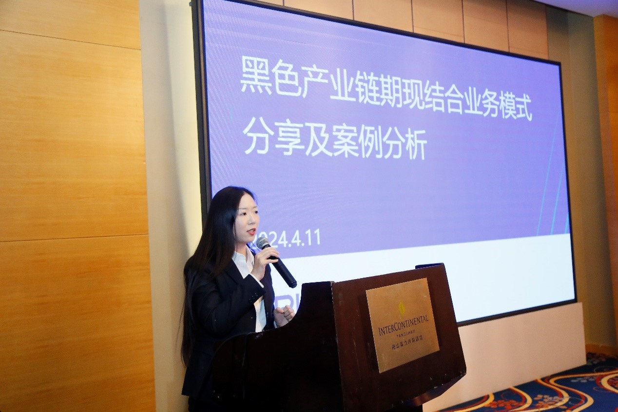 河鋼集團(tuán)北京國際貿(mào)易有限公司期貨部科長李夢做題為《黑色產(chǎn)業(yè)鏈期現(xiàn)結(jié)合業(yè)務(wù)模式分享及案例分析》的演講,結(jié)合河鋼集團(tuán)實(shí)踐經(jīng)驗(yàn),深入介紹了鐵礦石套期保值工具應(yīng)用、基差貿(mào)易模式、具體案例、交易雙方重點(diǎn)操作技巧,以及利潤套保、庫存管理等內(nèi)容。